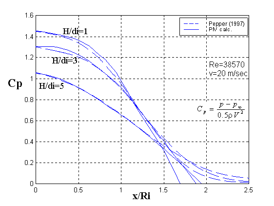 For comparison with the results published by Peper et. al (1997), a dimensionless pressure coefficient, Cp, was defined as shown in Fig. 3. Where